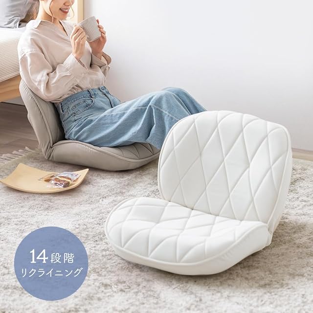 イーサプライ 座椅子 コンパクト 14段階リクライニング クッション 背もたれ かわいい 小さい おしゃれ 日本製ギア アイボリー EEX-CHSD04ZWH