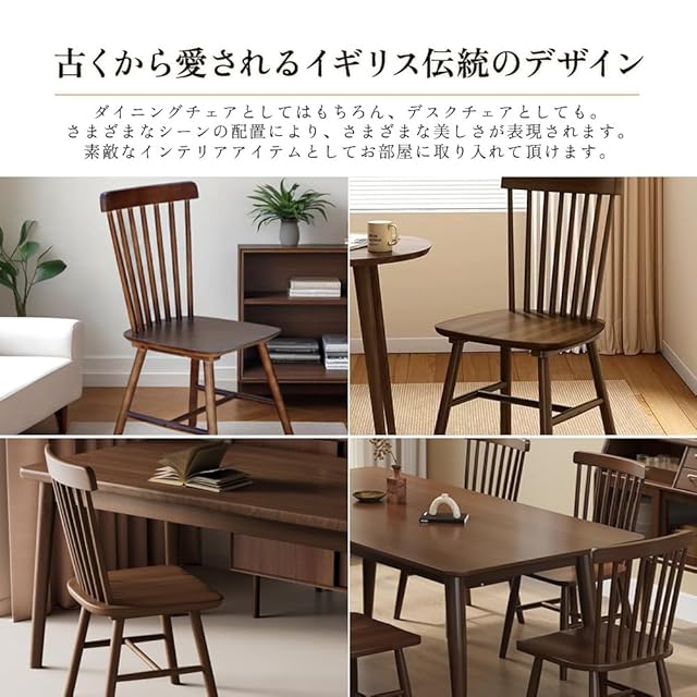 ダイニングチェア 2脚セット 木製ウィンザーチェア 人間工学 コームバック 要組立 椅子 餐椅 天然木 北欧 おしゃれ 48*48*86cm(ブラウン)