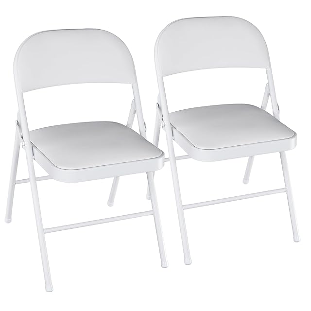 VECELO 折りたたみ チェア パイプ 椅子 [2脚セット] 会議椅子 背もたれ付き 軽量 持ち運び 完成品 アウトドア イベント 座面高44cm 耐荷重100kg PUレザー ホワイト