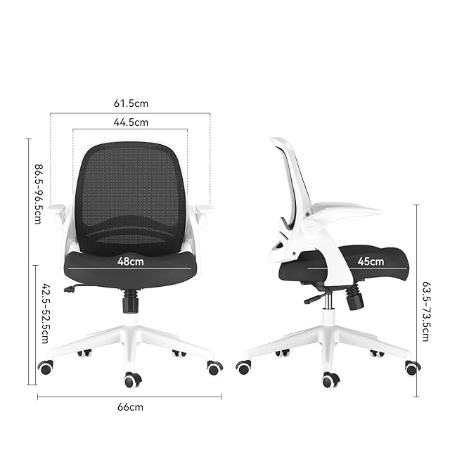 Hbada 椅子 オフィスチェア デスクチェア チェア イス パソコンチェア いす 跳ね上げ式アームレスト コンパクト ワークチェア 約105度ロッキング pcチェア 事務椅子 360度回転 座面昇降 強化ナイロン樹脂ベース メッシュチェア テレワーク 在宅ワーク J323 ホワイト