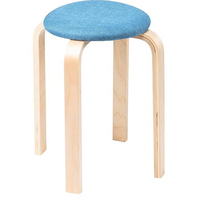 イーサプライ スツール 木製 クッション ファブリック 北欧 ナチュラル スタッキング おしゃれ 丸椅子 完成品 ブルー EEX-CH83BL