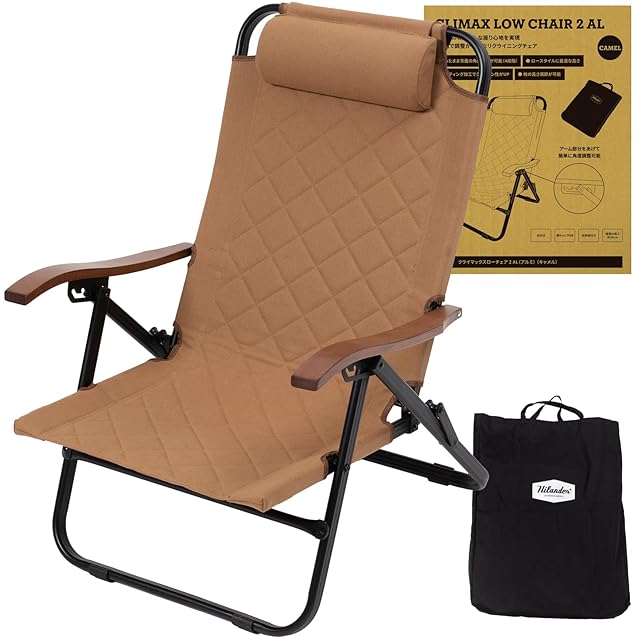 Hilander(ハイランダー) クライマックスローチェア AL(アルミ) 収納袋付 アウトドアチェア リクライニング キャメル