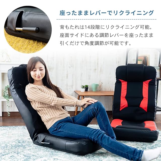 アイリスプラザ ゲーミング座椅子 座椅子【通気性メッシュ製】 ゲーミングチェア 通気性 リクライニング ヘッド部調節可能 収納可能 レッド GCN-4812 48×64×77