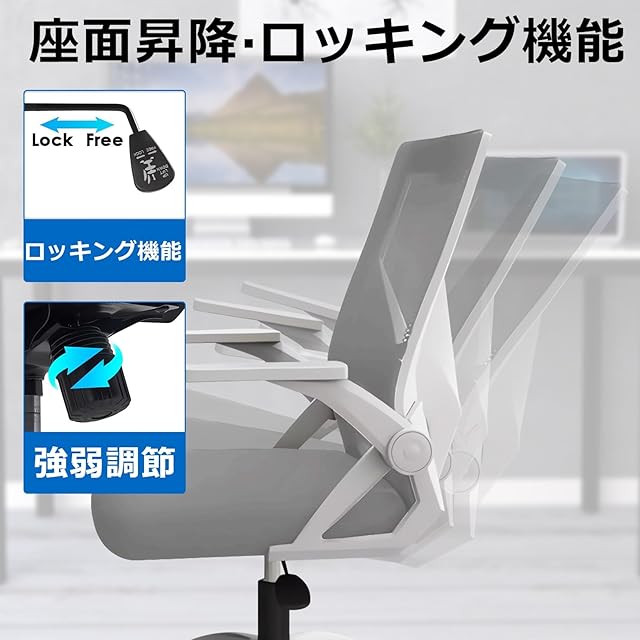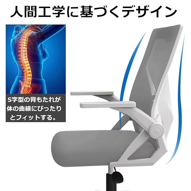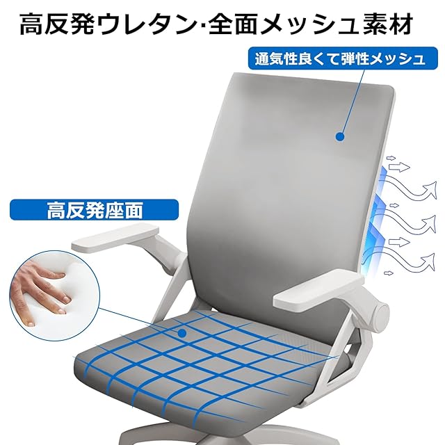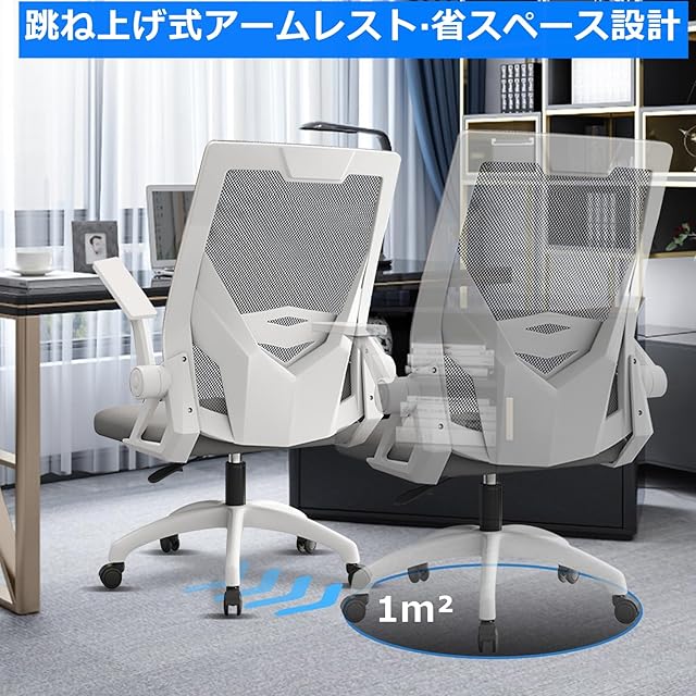 [Goswave] オフィスチェア 椅子 テレワーク 疲れない デスクチェア パソコンチェア ワークチェア 通気性メッシュ 跳ね上げ式アームレスト ロッキング機能 勉強/テレワーク/家庭用/事務所用 H-WY15 (灰網+白枠)