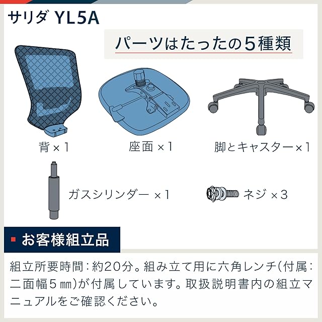 【ITOKI SALIDA YL5A】背座が連動して動くシンクロロッキングや上下可動ができるランバーサポートなど、デスクワークに必要な機能が豊富に備わったオフィスチェアです。選べる4カラー展開です。