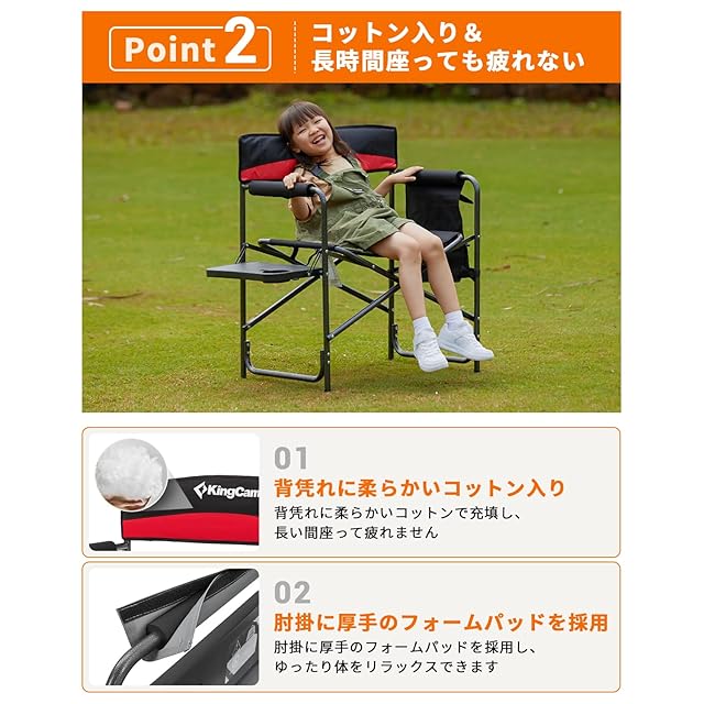 KingCamp ディレクターチェア 折りたたみ アウトドア チェア テーブル&ポケット付き キャンプ椅子 特大サイズ 耐荷重180KG 肘掛付き ディレクターズチェア 携帯便利 キャンプ用品