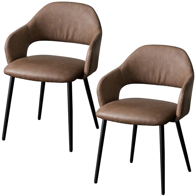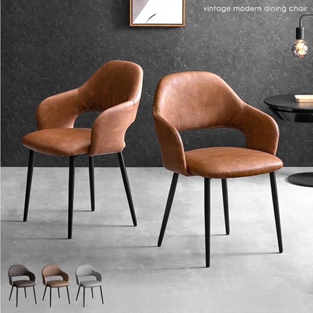 タンスのゲン ダイニングチェア 【2脚セット】 肘付き クッション座面 エイジング加工 食卓椅子 ダイニング チェアー シンプル モダン レザー調 オールドブラウン 83200002(85117)