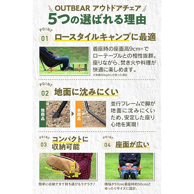 OUTBEAR【あぐらで使える】 アウトドアチェア ローチェア グランドチェア キャンプ あぐらチェア[国内検査機関で耐荷重120kg試験済み] (ブラック)