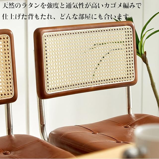 【快適な座り心地を提供する厳選素材】 ラタンの優れた座り心地が体にフィットし、毎日使うダイニングチェアや長時間座る作業スペースの椅子に最適です。ラタン編みの背もたれは、程よい弾力と通気性があり、どんな部屋にも合います。