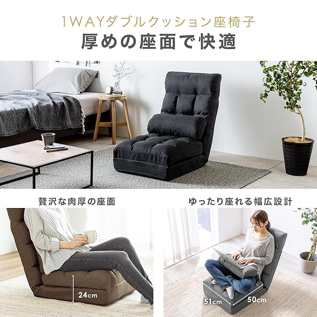 厚みのあるウレタンフォームのクッションが体圧を分散し、快適に使用できます。座面の幅は約50cmあり、男性でも安定して座れます。クッション付きで、腰当てや枕としても使用できます。
