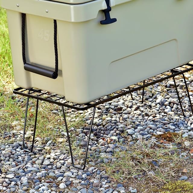 【フィールドラック ブラック 2枚 / 611616】 脚高のある棚で、キャンプサイトをもっと快適に。 荷物を雨水や泥汚れから守ります。 ■使用時サイズ:約60×35×23 ( 高さ ) cm ■収納時サイズ:約60×35×1 ( 厚さ ) cm ※製品によって仕上りサイズに多少の誤差がありますのでご了承下さいませ。 ■重量:約 1.7kg