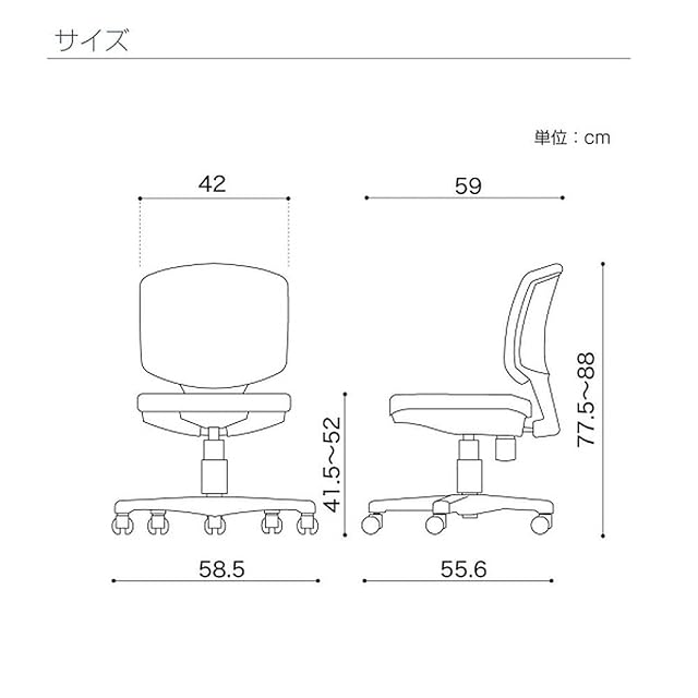 <材質>■背・座:布地張り■背・座フレーム:ポリプロピレン■脚:ガラス繊維強化ナイロン■キャスター:ナイロン双輪キャスター