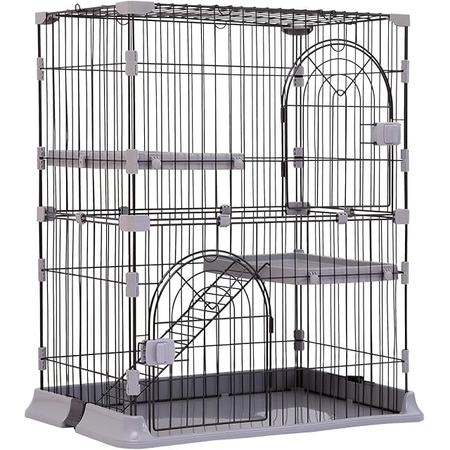 Shinyever 猫ケージ キャットケージ 高さ89cm* 幅75*奥行43 猫 ケージ 大型 ペットケージ 脱走防止 留守番 1段 2段 組み替え自由 お掃除らくらく 日本語説明書 (グレー, 2段)