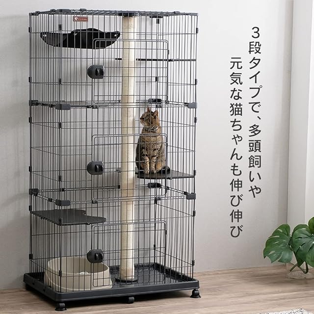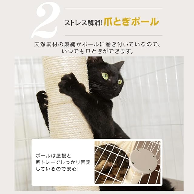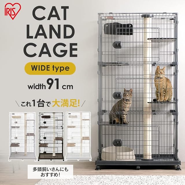 アイリスオーヤマ キャットタワー付ケージ ワイド オフホワイト 猫用 高さ169×幅93×奥行63cm PCLC-903