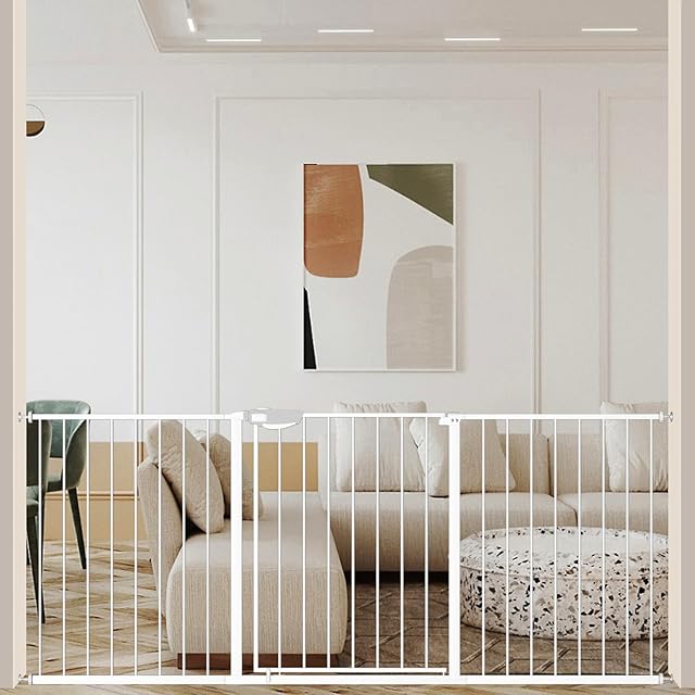 Seogva ベビーゲート 拡張フレーム付き バリアフリー ゲート 高さ78cm 三重ロック 赤ちゃんゲート ブラック ホワイト ブラウン 突っ張り式 開閉式 階段上ゲート ピーナッツロック (設置幅171-183cm,ホワイト)
