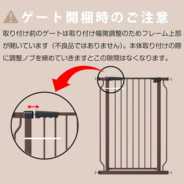 「穴開け不要のつっぱり式」簡単に設置できるつっぱり式ベビーゲート。壁に穴を開ける必要なく、アジャスターボルトで簡単に固定、壁にキッズなども残りません。
