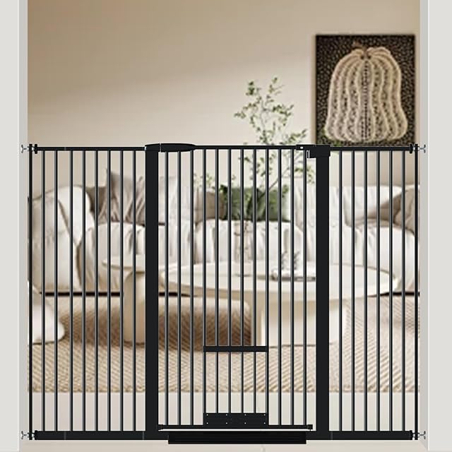 Seogva ペットゲート ベビーゲート 高さ103㎝ 間隔3 ㎝ ペットゲート ドア付き 猫すり抜け防止 飛び越え防止ゲート 猫ドア付きゲート 過密フレーム付き(ブラック 137-156 cm)