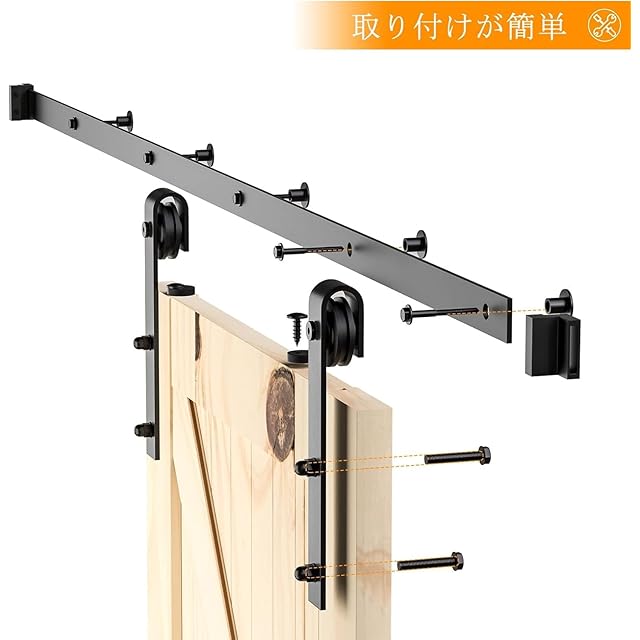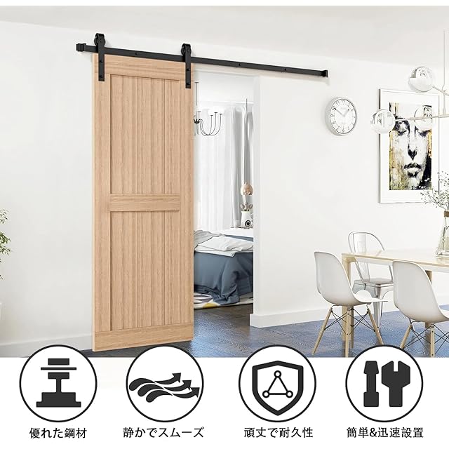 【高い互換性・DIYに最適】 この1.83m吊り引き戸レールセットは、幅87cm以下、厚さ3.5~4.5cmの室内ドアに最適です。簡単DIY設計で、あなた好みのユニークなお部屋スタイルを簡単に実現!※ご注意:引き戸 diy キットのみ販売、ドアは含まれません。使用前に付属品をご確認ください。