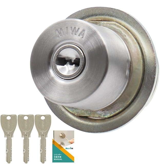 MIWA(美和ロック) LIX シリンダー錠 PR 玄関ドア 鍵 交換 ディンプルキー シルバー(ST色) MCY-243 交換手順書付 キー3本 TE LE PESP GAS