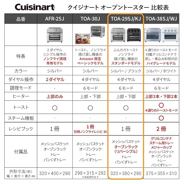 クイジナート ノンフライ オーブントースター 4枚焼き ノンフライ調理 リバーシブルラック 4ダイヤル レシピブック付き シルバー TOA-29SJ