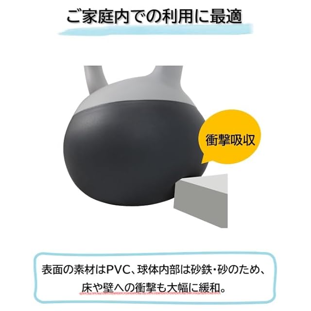 【ご家庭での利用に最適】★細いグリップ仕様のため、しっかりと握ることが出来、ハンドルから手が離れるリスクが軽減されます。★表面の素材はPVC、球体内部は砂鉄・砂のため、床や壁への衝撃も大幅に緩和。ご家庭内でも安心してトレーニング頂けます。