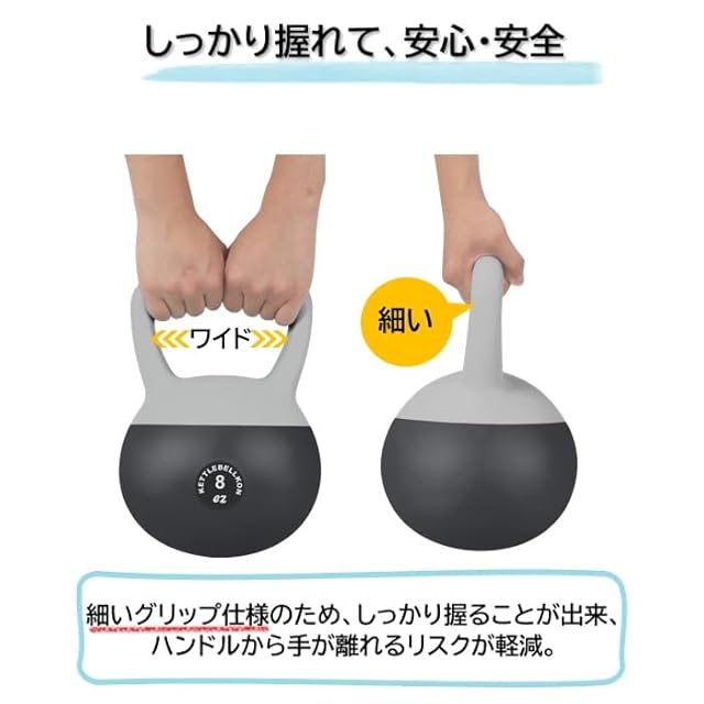 【カーディオ(有酸素運動)に最適】★握力(前腕)への負荷が小さいため、従来のソフトケトルベル(当社比)よりも、比較的長い時間トレーニング・エクササイズ頂くことが出来、カーディオ(有酸素運動)や運動不足解消、ストレス解消に最適です。